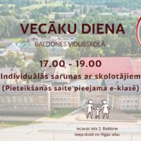 Vecāku diena 2025. gada 5. novembrī Baldones vidusskolā. Individuālās sarunas ar skolotājiem klātienē 17:00-19:00. Reģistrācija uz sarunu ar skolotājiem līdz 4. novembra plkst. 18:00. Pieteikšanās saite pieejama e-klasē.