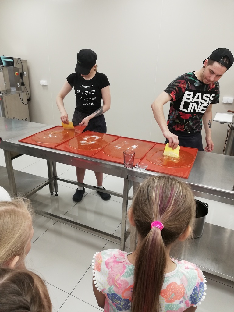 Radošā darbīca bija jaukajā un smaržīgajā Jelgavas karameļu darbnīcā. Bērni vēroja, kā no cukura sīrupa top konfekte un gatavoja konfekti arī sev.