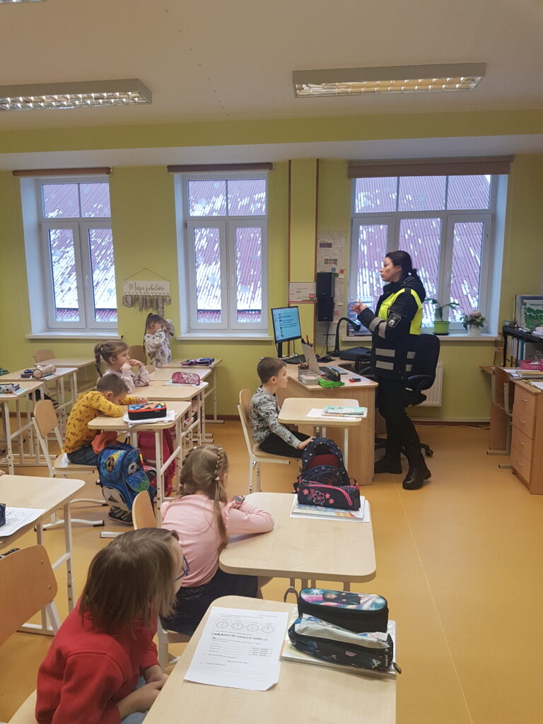 26.janvārī Baldones vidusskolas 1.a un 1.b klasēs viesojās Ķekavas reģionālās policijas nepilngadīgo lietu inspektore Sintija Jurjāne. Inspektore skolēniem pastāstīja par mazo gājēju un riteņbraucēju drošību. Runājām par drošu ceļa šķērsošanu. Runājām par to, cik svarīgs ir atstarotājs apģērbā vai pie somām, darot redzamu gājēju autovadītājam tumšajā diennakts laikā. Runājām par drošību pie ūdenstilpēm. Inspektore atzinīgi novērtēja skolēnu paustās zināšanās!