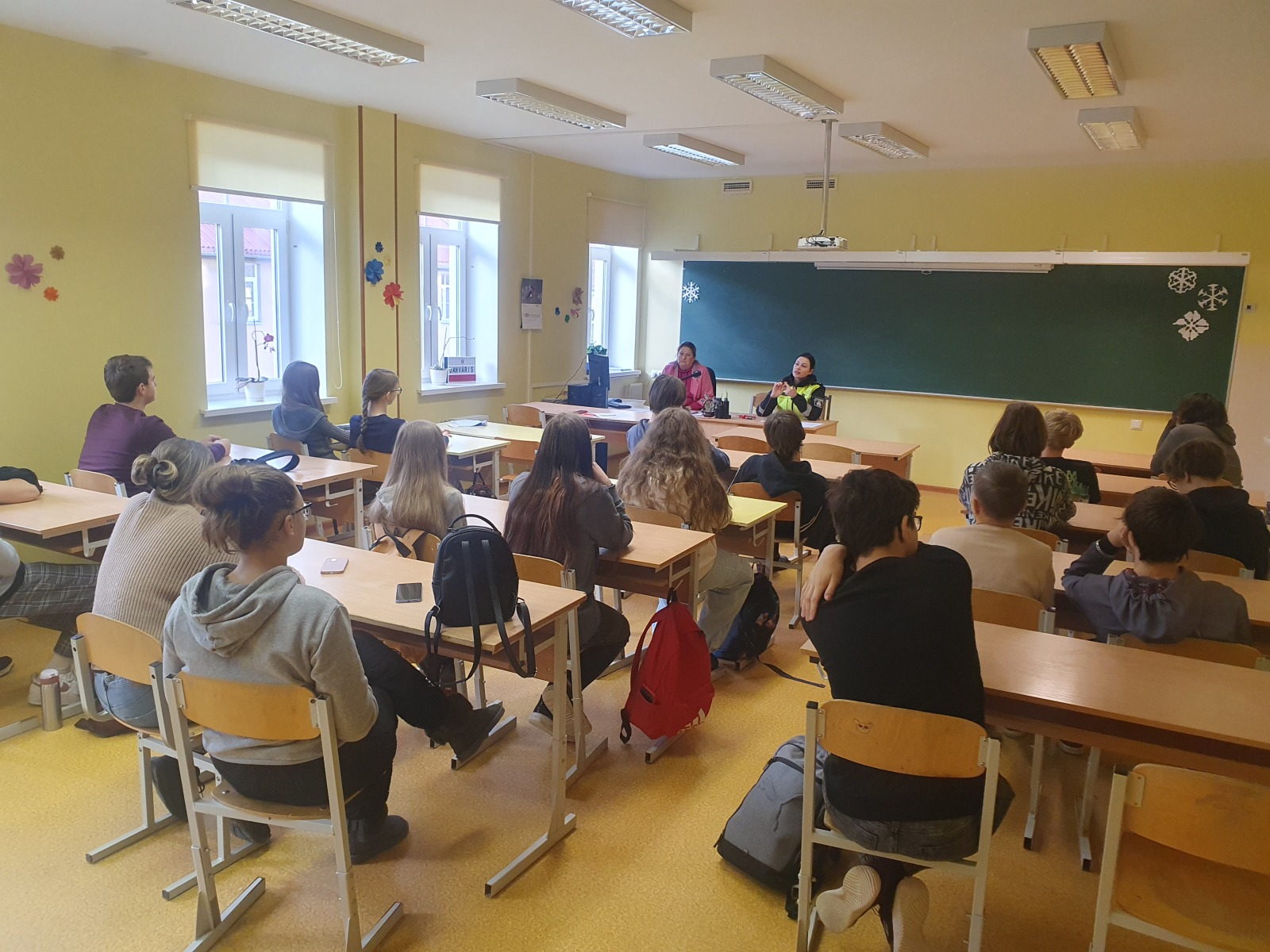 11. janvāri 8.c, 9.a, 9.c klasēs notika preventīva nodarbība ar mērķi padziļināt izglītojamo izpratni par atkarību izraisošo vielu un procesu riskiem, kā arī akcentēt tiesiski un sociāli drošas uzvedības nozīmi cilvēka dzīvē. Nodarbību vadīja skolas atbalsta speciālisti sadarbībā ar pašvaldības nepilngadīgo lietu speciālisti Sintiju Jurjāni.