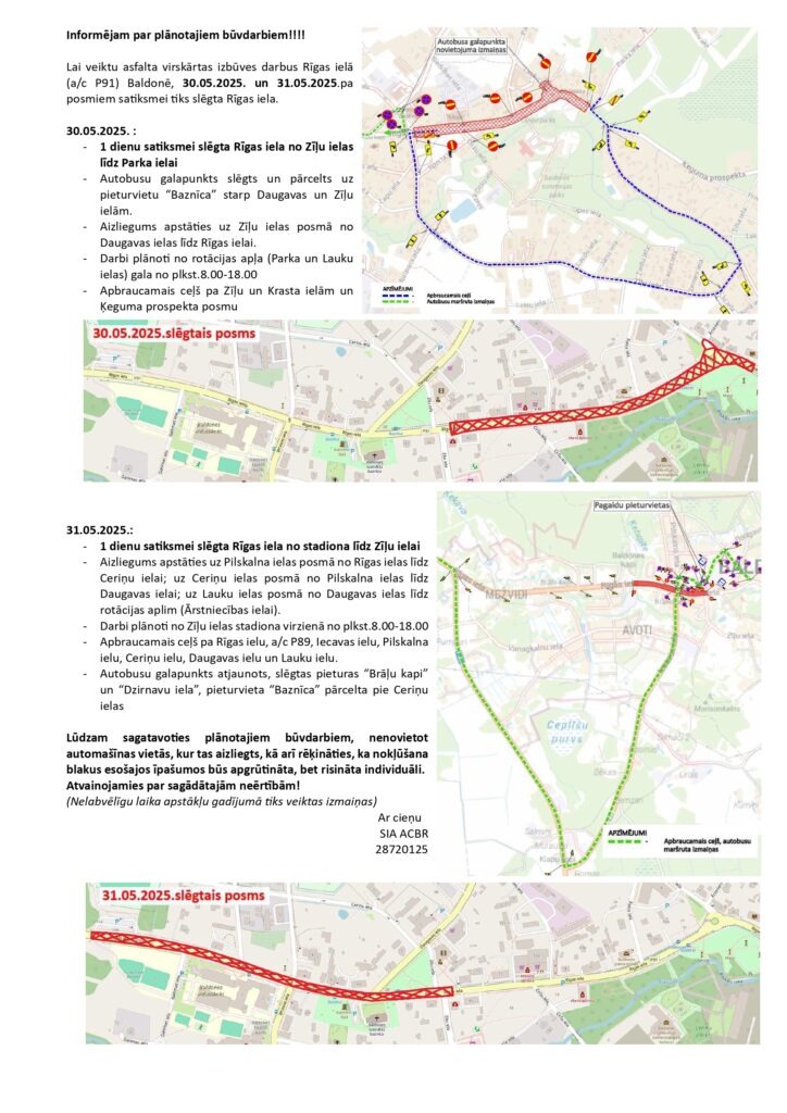 30., 31. maijā būs slēgta satiksme Rīgas ielā Posted on09/05/2025Authoradministrators 30., 31.maijā būs slēgta satiksme Rīgas ielā