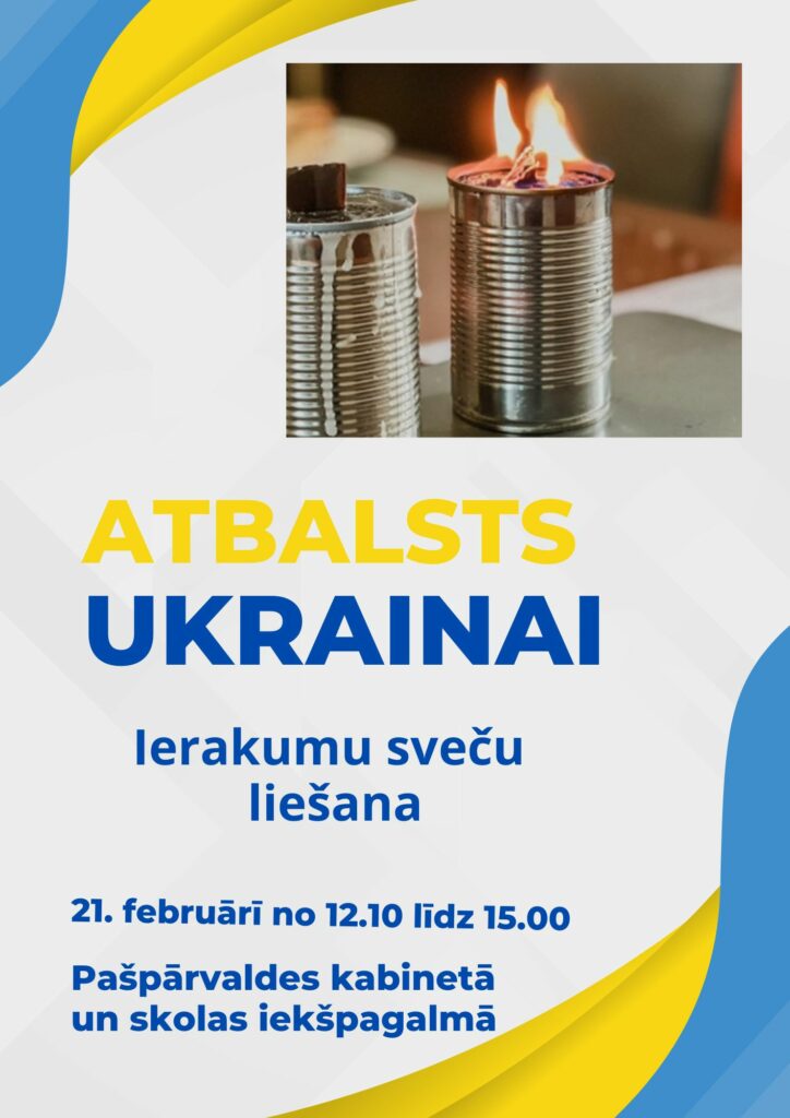 Piektdien 24. februārī apritēs gads kopš Krievijas uzbrukuma Ukrainā. Atbalstot Ukrainu, Baldones vidusskolā 21.februārī viesojās rakstniece un viena no ierakumu sveču liešanas aizsācējām Latvijā Maija Pohodņeva. Skolēniem un pedagogiem bija iespēja, ieguldot savu sirds siltumu, izgatavot ierakumu sveces, kuras pēc tam varēs sasildīt drosmīgos Ukrainas karavīrus frontē.