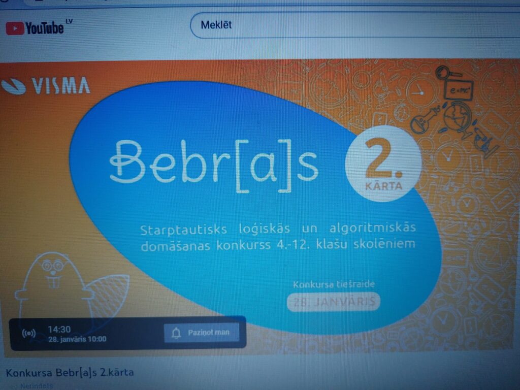 2023. gada 28. janvārī norisinājās Bebr[a]s 22 Starptautisks loģiskās un algoritmiskās domāšanas konkursa 2. kārta (4. – 12. klašu skolēniem).