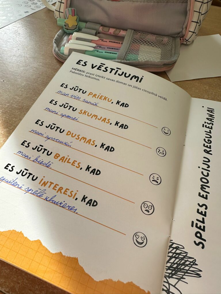 Tā bija lieliska iespēja skolēniem nostiprināt savas sociālās prasmes, veicināt emocionālo noturību un labāk izprast savas emocijas. Skolēni izzināja drošas vides nosacījumus, iepazina dažādus emociju vārdus, izzinot situācijas, kurās tos piedzīvo ikdienā. Atbildot uz dažādiem jautājumiem un pildot īpaši izstrādātu darba burtnīcu, bērni mācījās izprast trauksmes un strīdu situācijas, kā arī veiksmīgi meklēja tām risinājumu.
