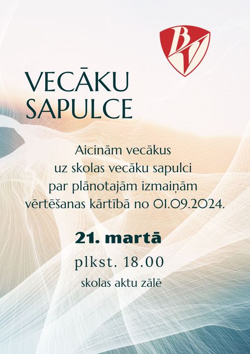 Aicinām vecākus uz skolas vecāku sapulci par plānotajām izmaiņām vērtēšanas kārtībā no 01.09.2024.