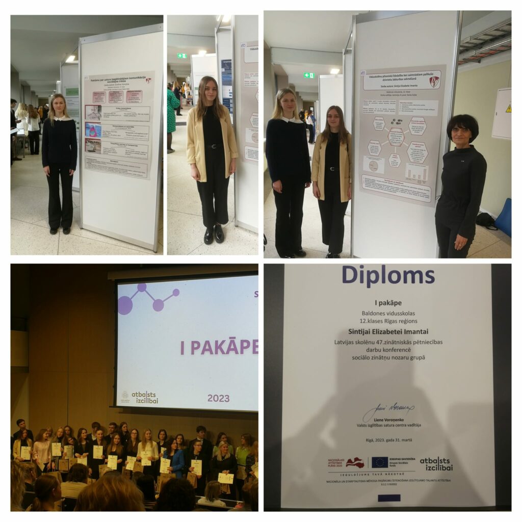 31. martā Latvijas skolēnu 47. zinātniskās pētniecības darbu konferences 3. posmā (valsts ZPD konference) piedalījās divas Baldones vidusskolas skolnieces – Evelīna Voroņina un Sintija Elizabete Imanta (skolotāja Baiba Kaļķe).