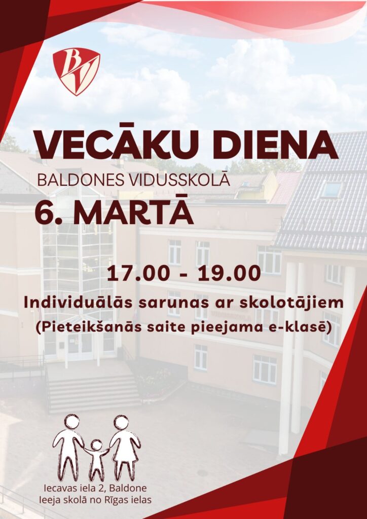 Vecāku diena 6. martā Baldones vidusskolā Posted on18/02/2025Authoradministrators Individuālās sarunas ar skolotājiem un atbalsta personālu. 6. martā 17:00-19:00. Pieteikšanās saite e-klasē